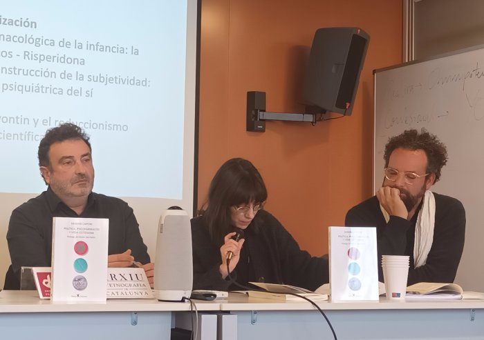 El llibre "Política, psicofármacos y vida cotidiana", de la investigadora Sandra Caponi va ser presentat per Ángel Martínez-Hernáez, Elisa Alegre i Martín Correa-Urquiza a l'Arxiu d ?Etnografia de Catalunya el passat 29 de novembre.