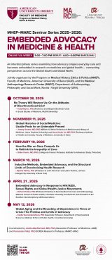Organitzada conjuntament pel Programa d'Història, Ètica i Política Mèdica (MHEP), Facultat de Medicina, Universitat Americana de Beirut (AUB), i pel Centre de Recerca en Antropologia Mèdica (MARC), Departament d'Antropologia, Filosofia i Treball Social, Universitat Rovira i Virgili (URV).